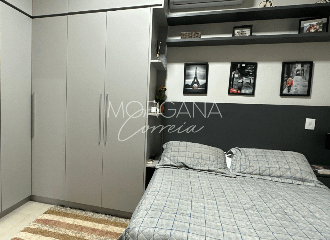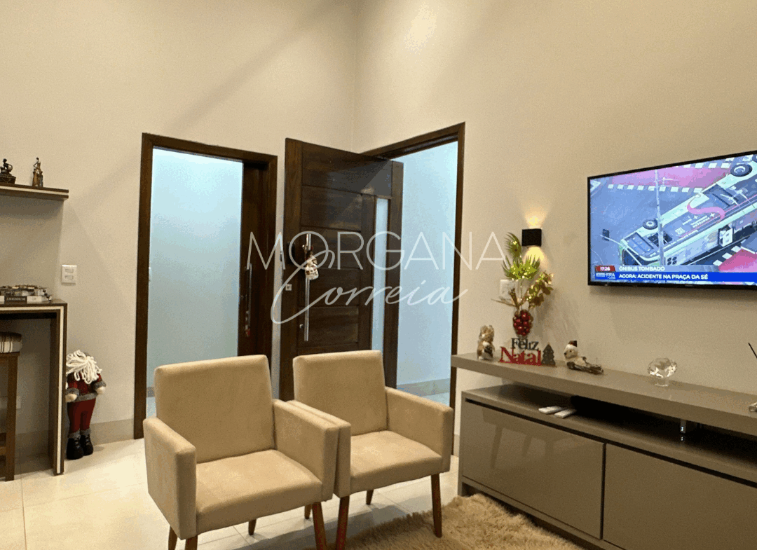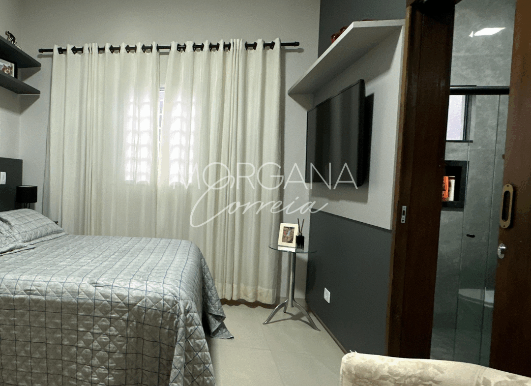 O imóvel conta com sala de estar, sala de jantar e sala de TV, proporcionando integração e praticidade no dia a dia. Possui uma suíte com armário embutido, um quarto com armário embutido, um quarto adicional, banheiro social e lavabo.