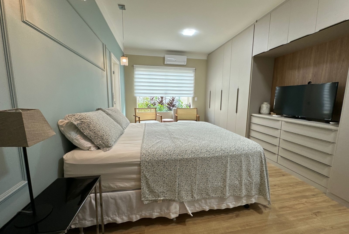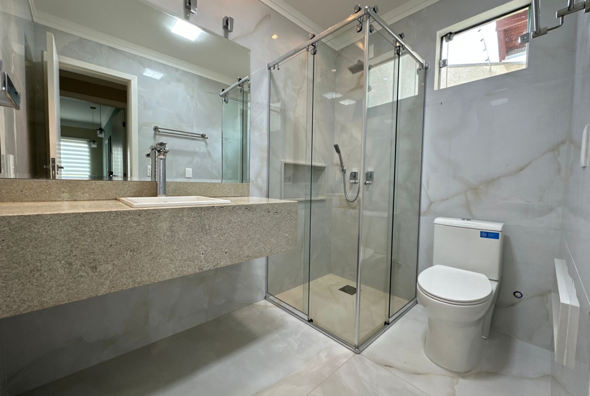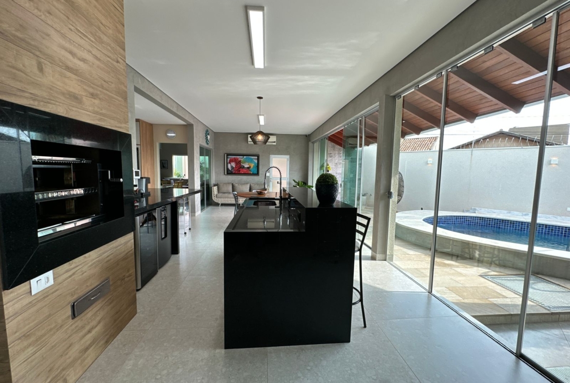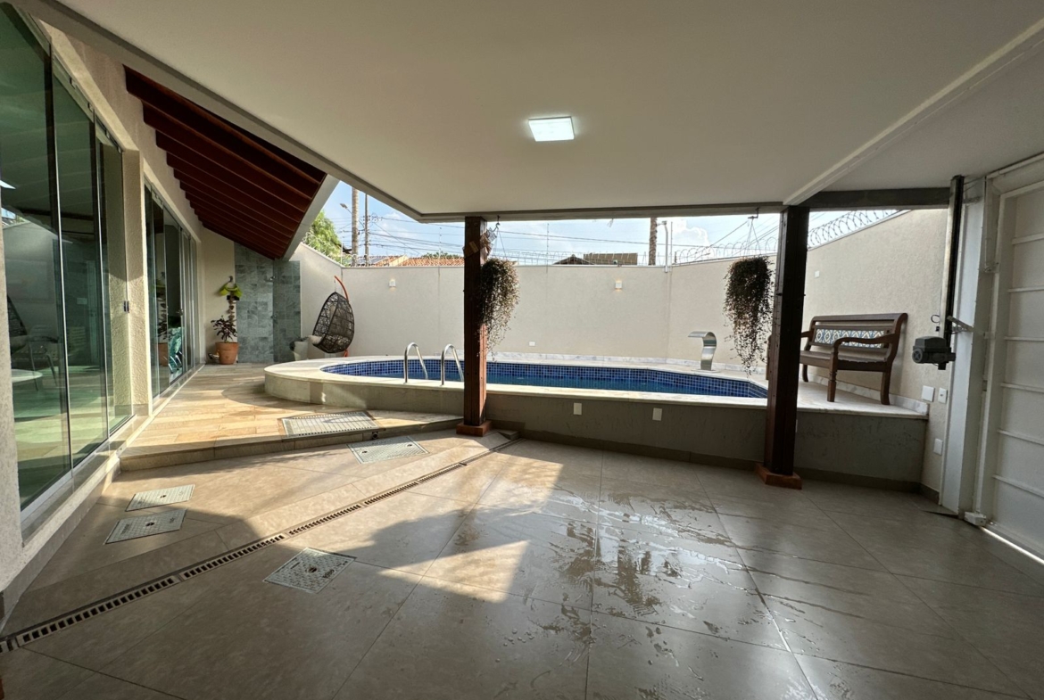 A casa possui ainda área de serviço independente, três vagas de garagem cobertas, câmeras de segurança, interfone, portão elétrico e acabamento em piso Fornari. Um imóvel completo, com ambientes amplos e bem iluminados, pronto para proporcionar qualidade de vida e momentos de lazer em um só lugar.