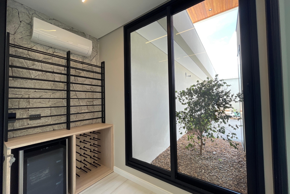 A residência é equipada com energia solar fotovoltaica de 2000 watts, aquecedor solar, persianas elétricas, ar-condicionado e louças Kohler. O sistema de segurança é de última geração, com câmeras, cerca elétrica e guarita com vidros blindados, proporcionando tranquilidade e proteção total.