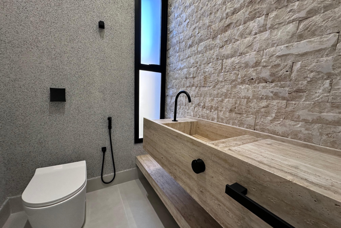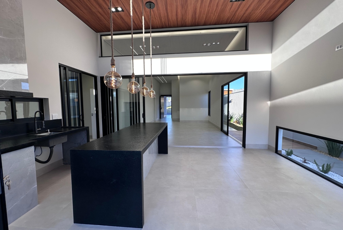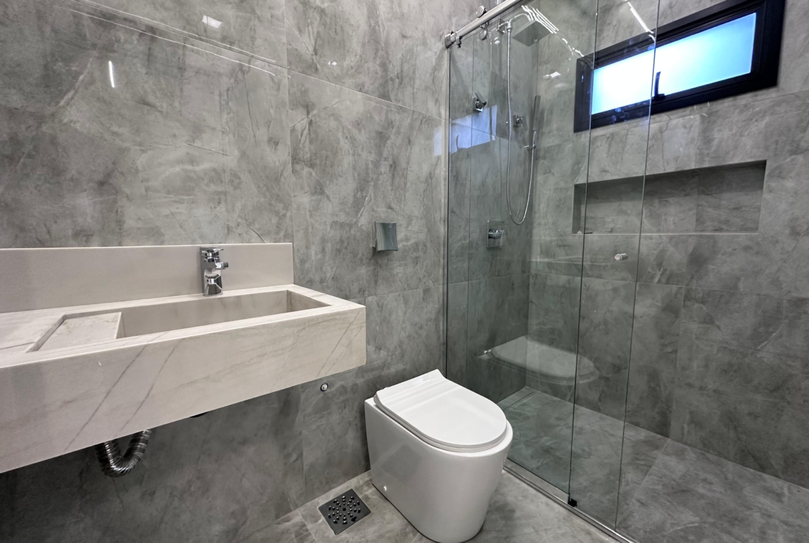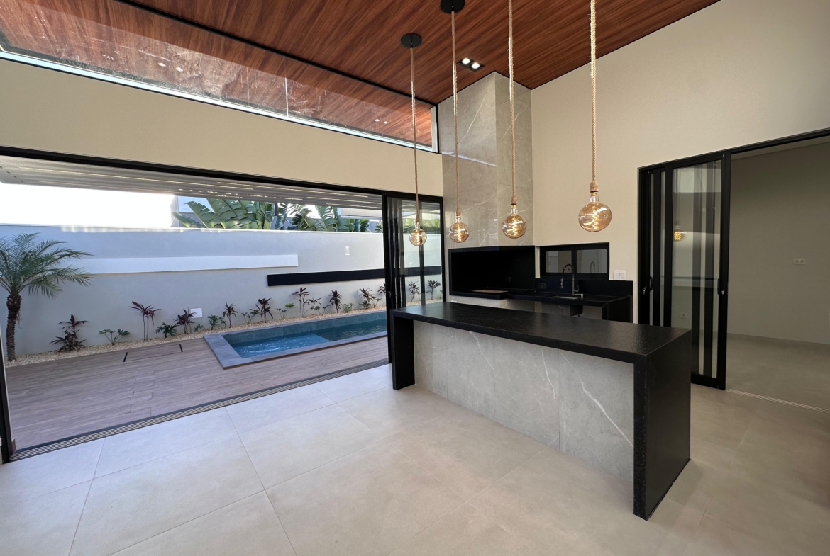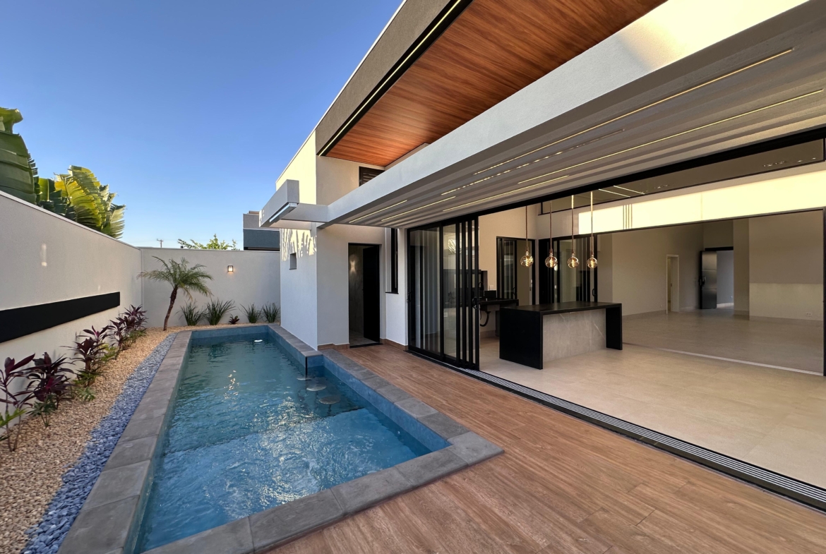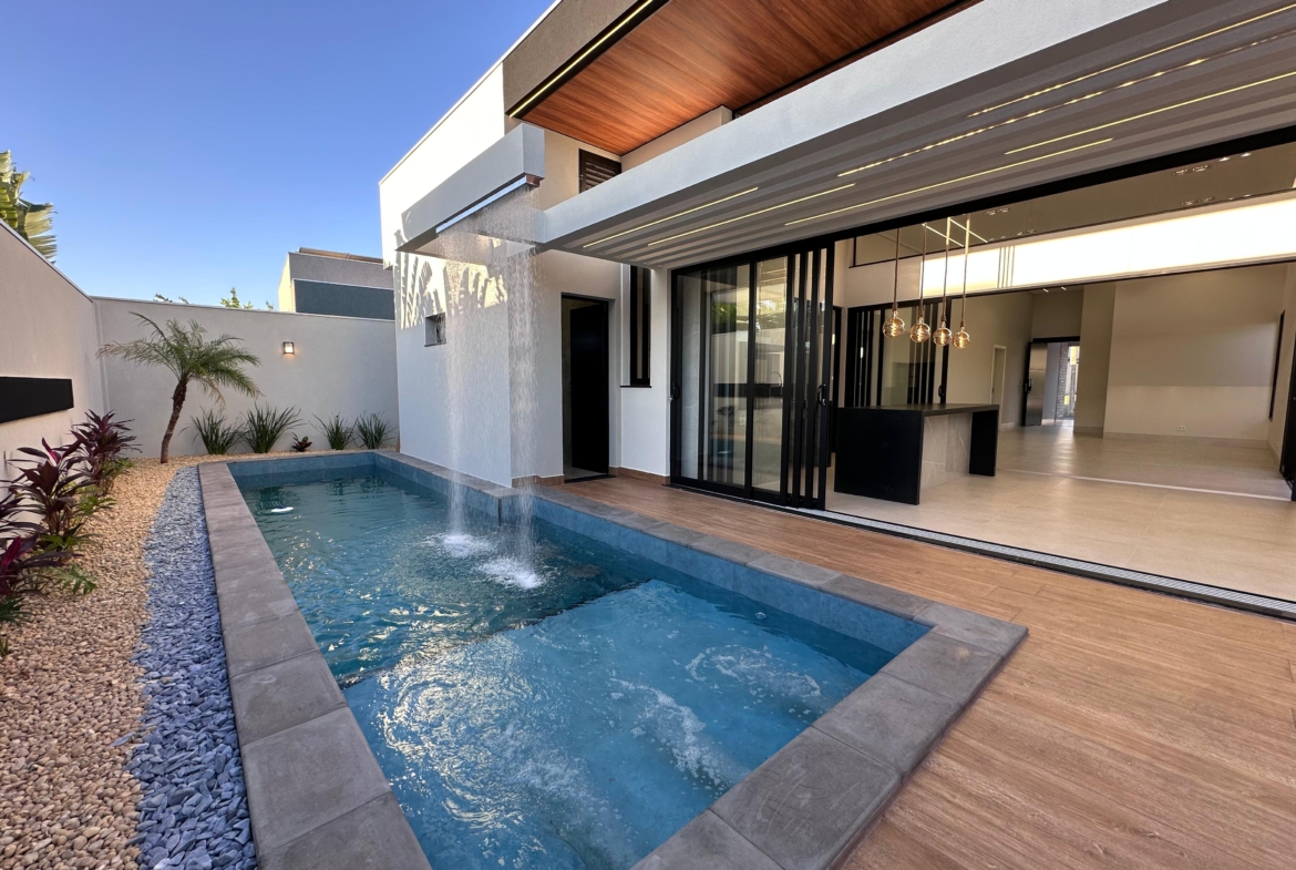 Com 394,57 m² de terreno, esta residência une conforto, sofisticação e lazer completo em condomínio com portaria e área de lazer.