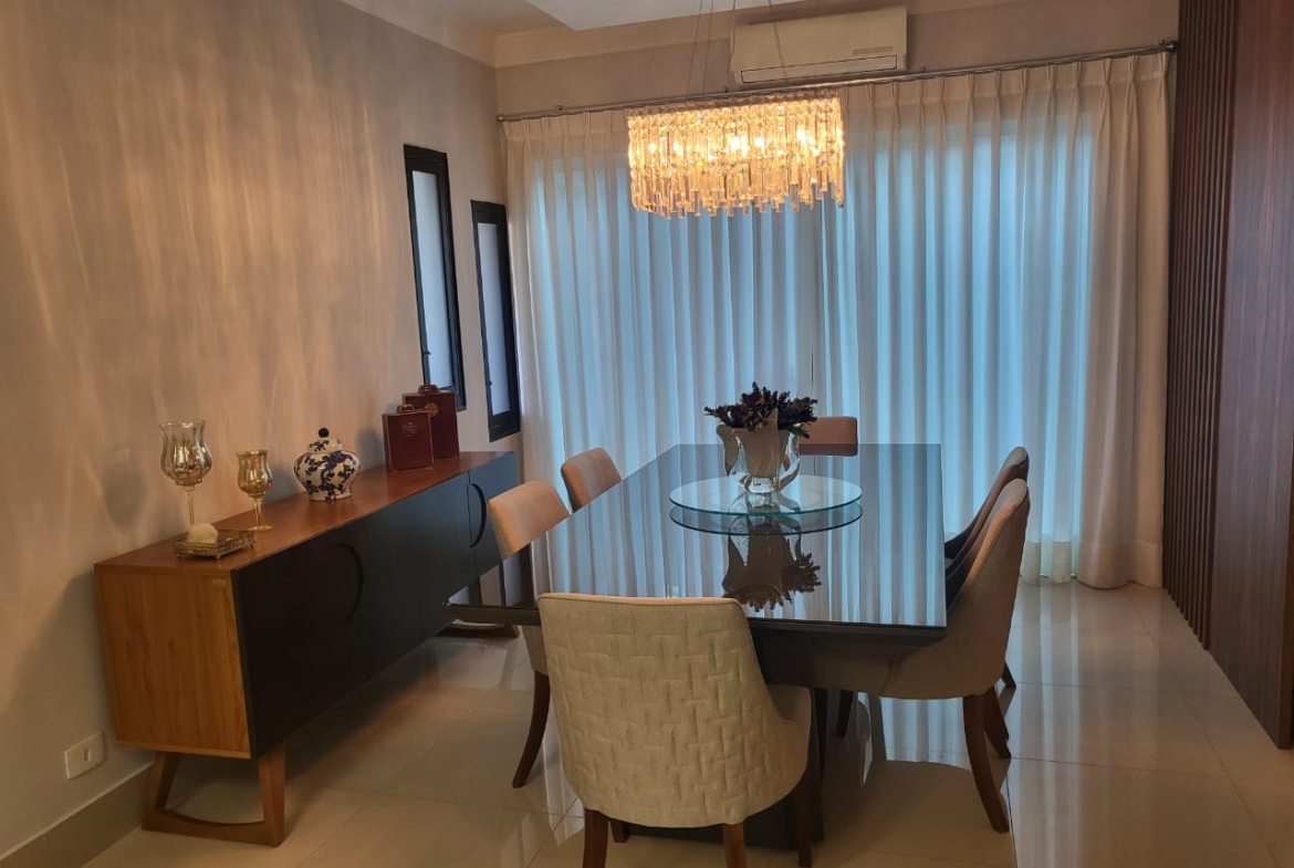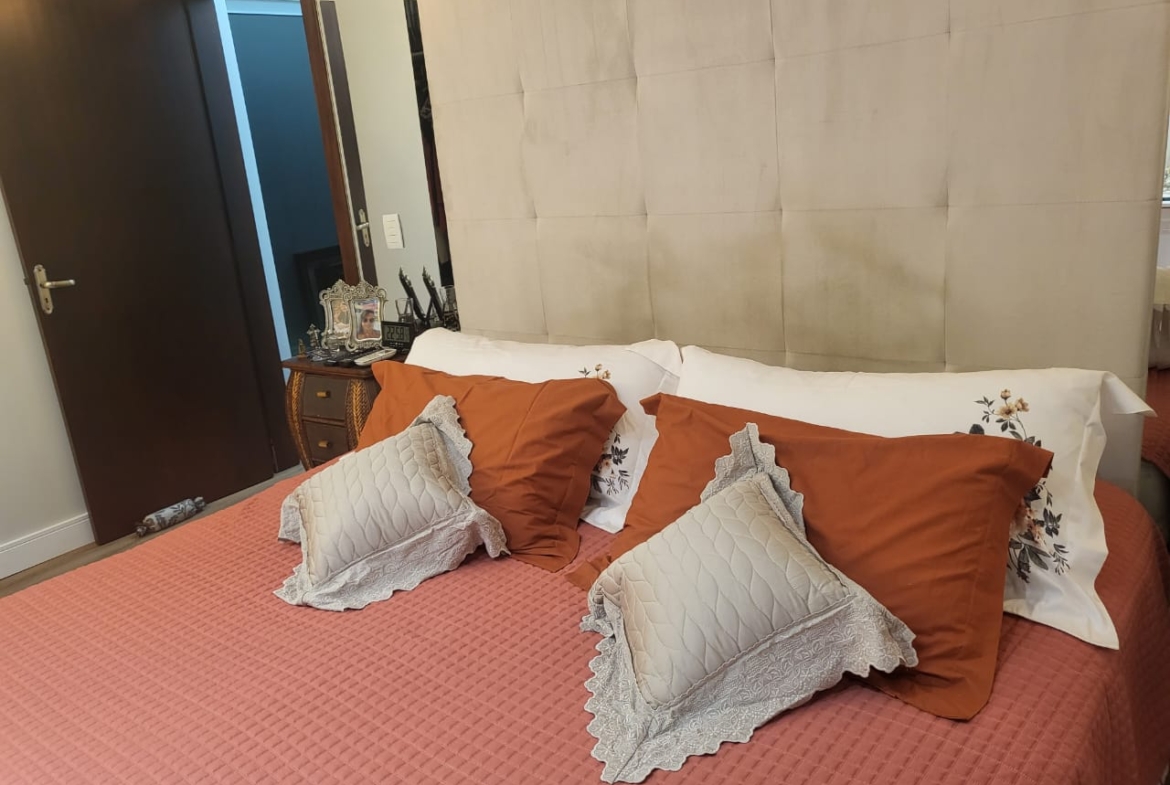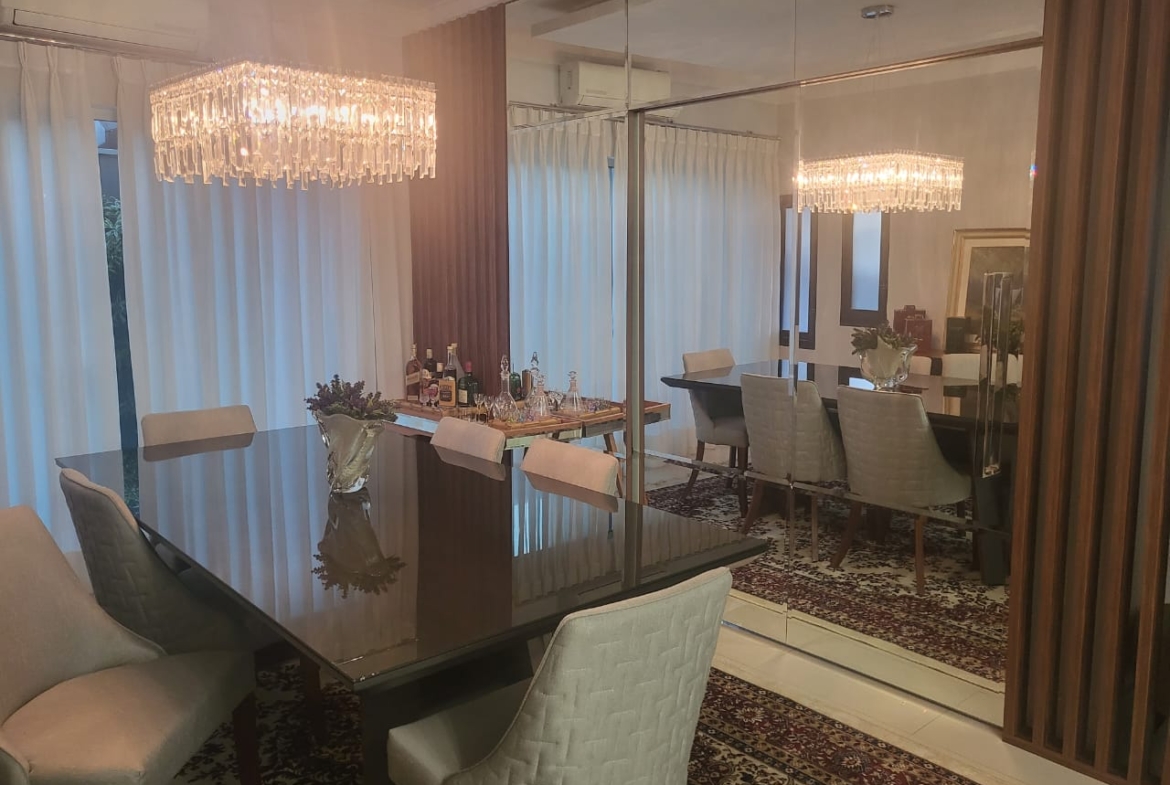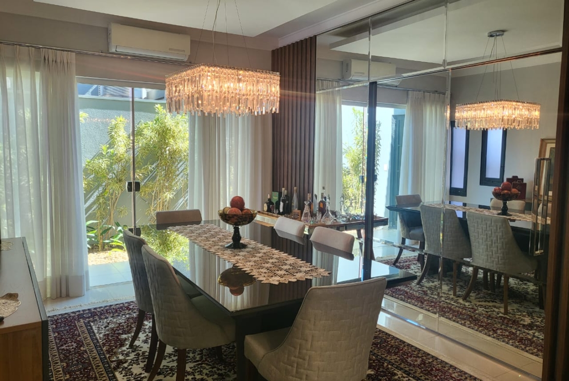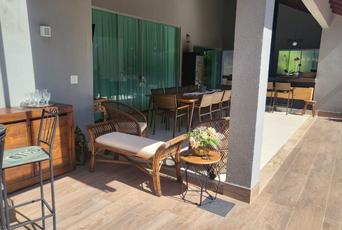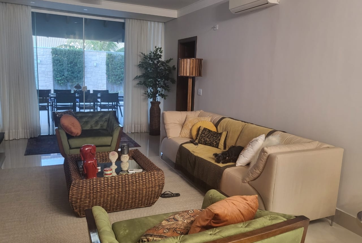 Conta com três suítes amplas com armários planejados, além de salas integradas de estar, jantar e TV, que garantem amplitude e luminosidade natural. A cozinha é totalmente planejada e se conecta à área gourmet com churrasqueira, ideal para momentos de convivência e lazer em família.