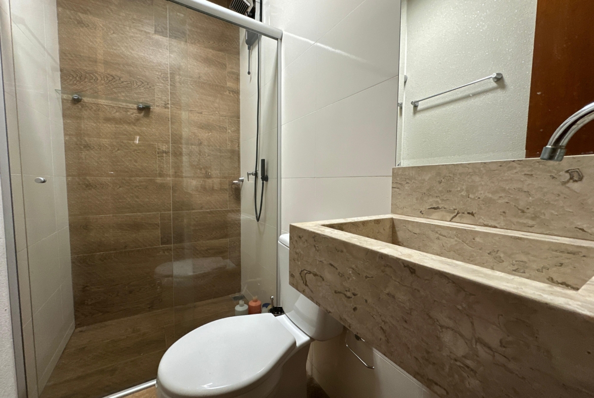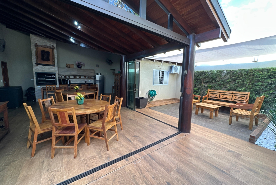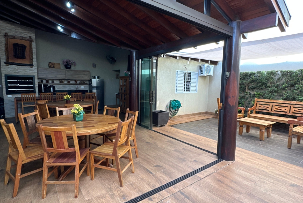 Na área externa, conta com varanda, churrasqueira, jardim e um apartamento independente, ideal para receber visitas com conforto e privacidade.