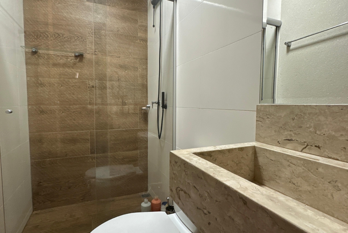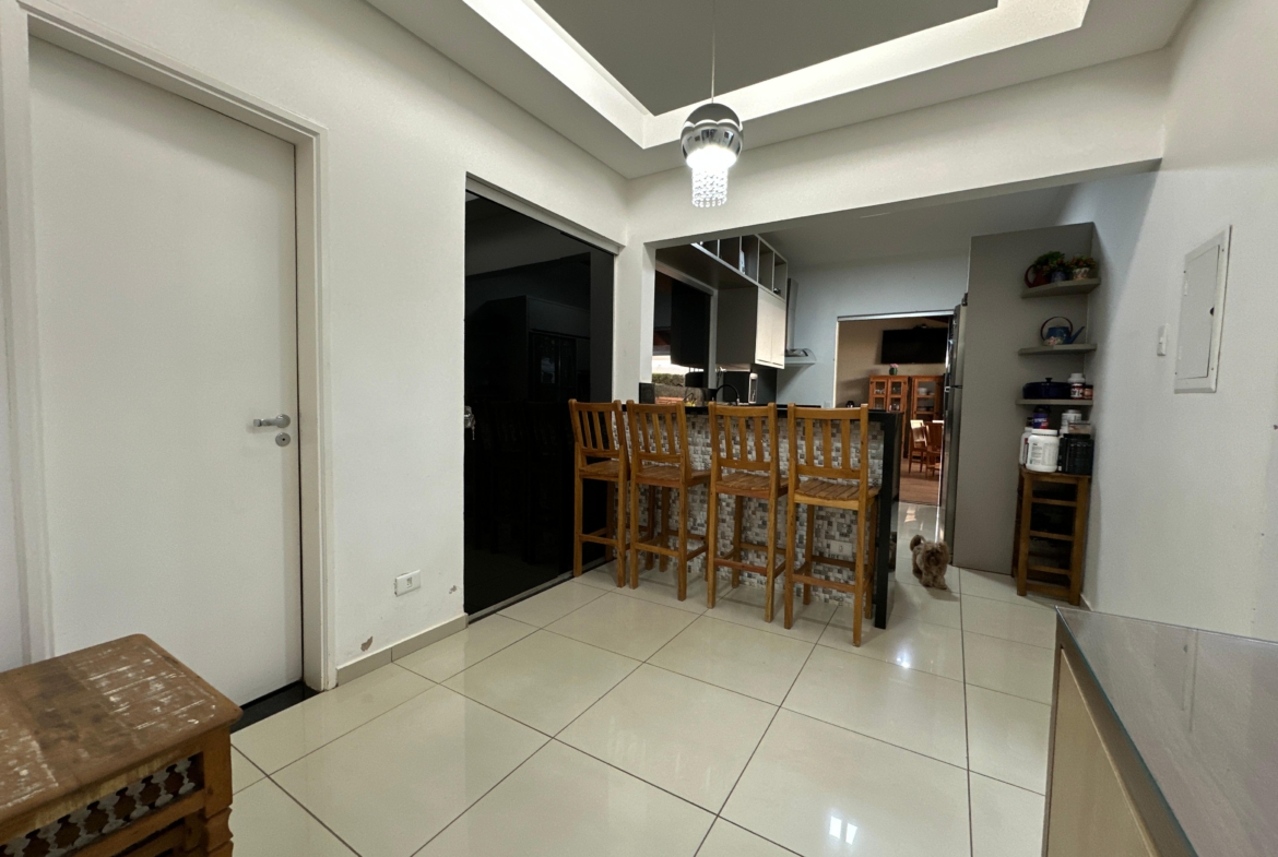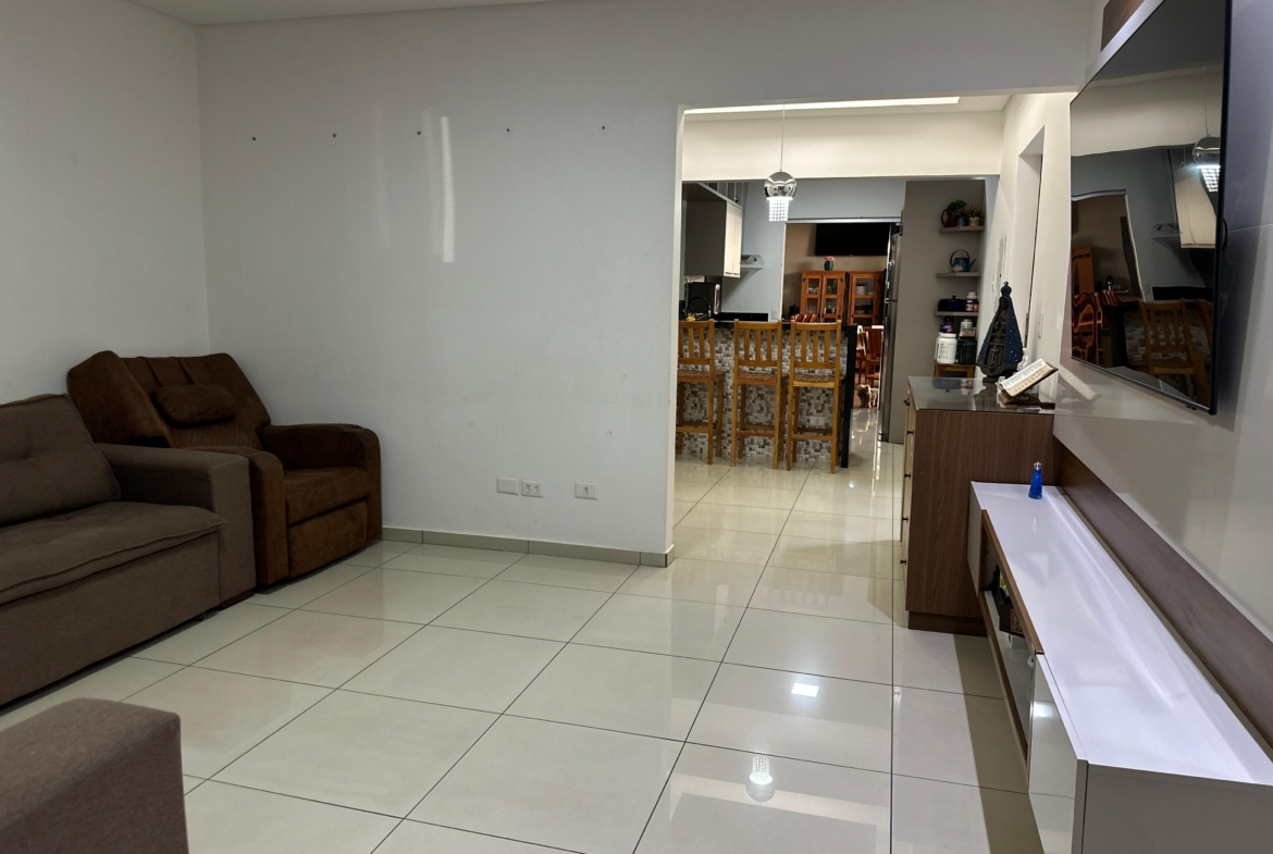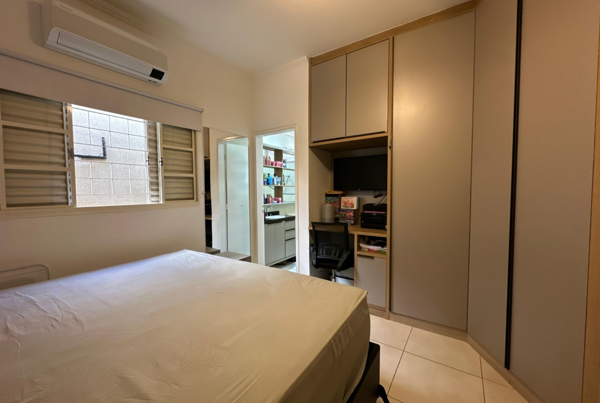 Possui 1 suíte com armário planejado, 2 quartos com armários, 1 quarto adicional, banheiro social, sala de jantar, sala de TV, lavabo, cozinha americana planejada e lavanderia.
