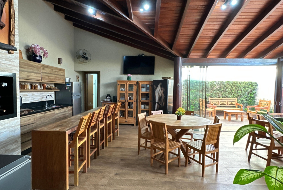 Com 232 m² de área construída em terreno de 275 m², esta residência une estilo rústico e muito aconchego.