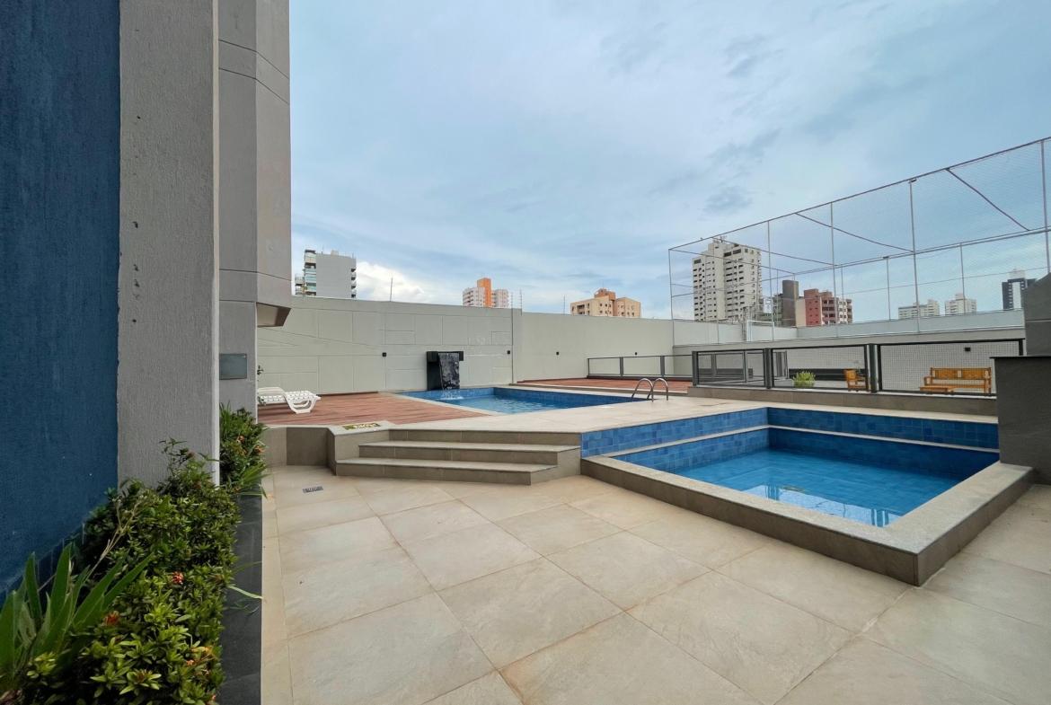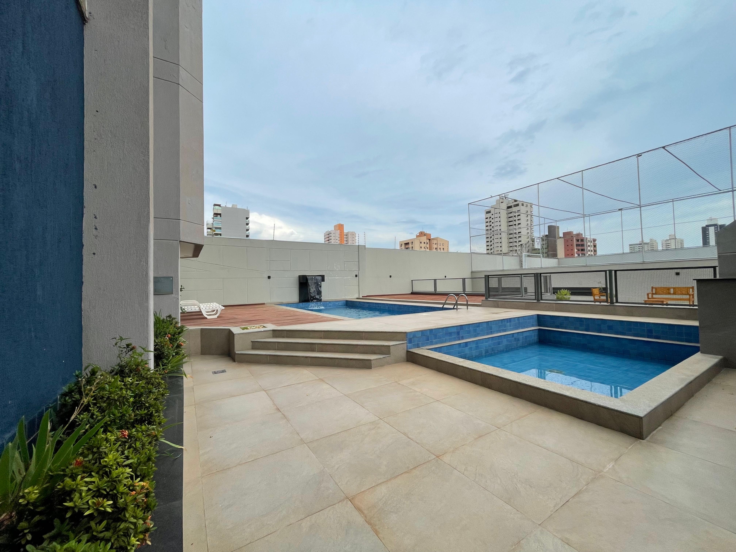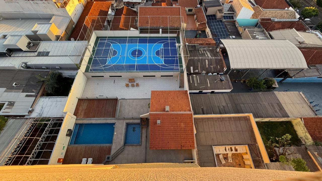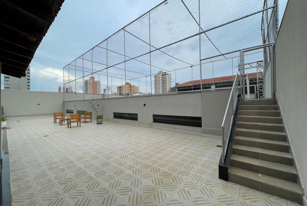 O condomínio oferece área de lazer revitalizada, com piscina, churrasqueira, salão de festas, salão de jogos, playground, quiosque e jardim, além de portaria, elevador e 2 vagas de garagem. Dispõe ainda de infraestrutura completa com água, esgoto, asfalto, calçada, piso tátil, muro e rede elétrica.