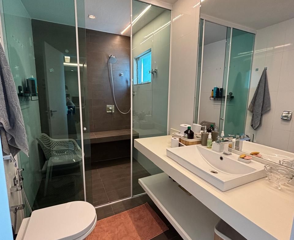 No piso superior, um espaço exclusivo para o lazer e bem-estar: sala de cinema aconchegante, suíte master com closet e sauna, além de uma charmosa varanda com vista privilegiada.