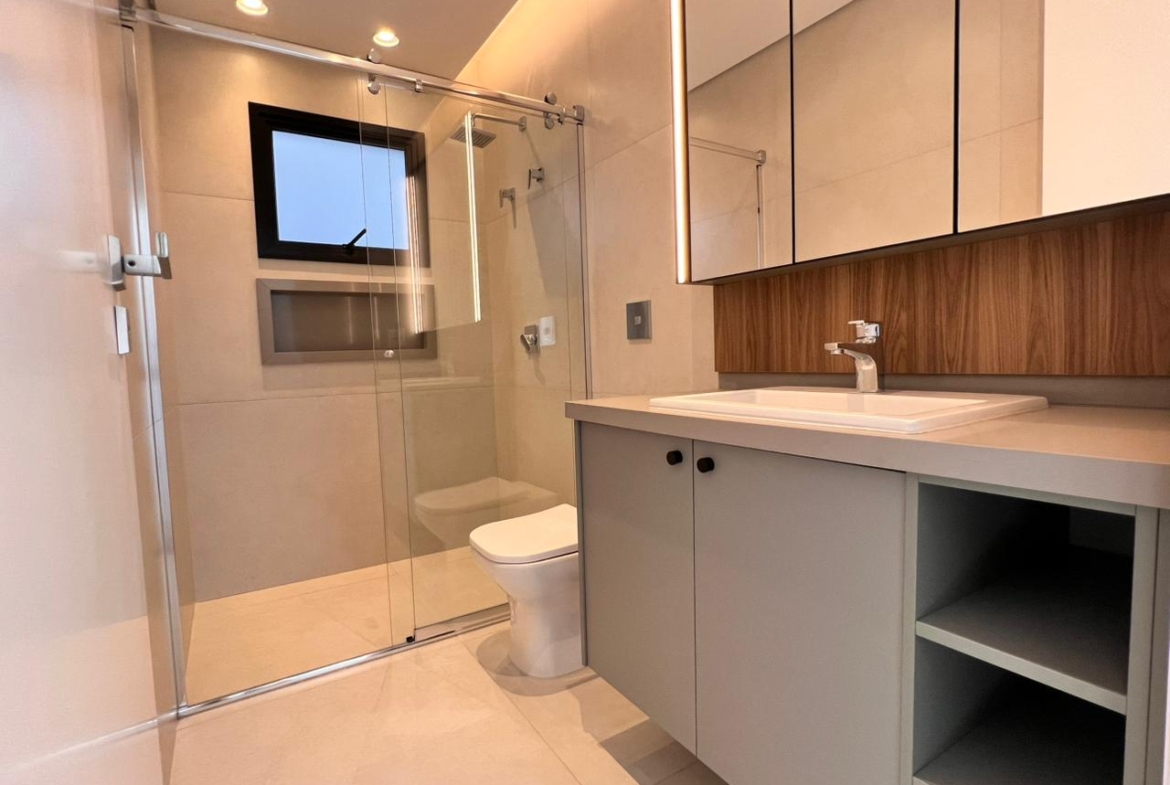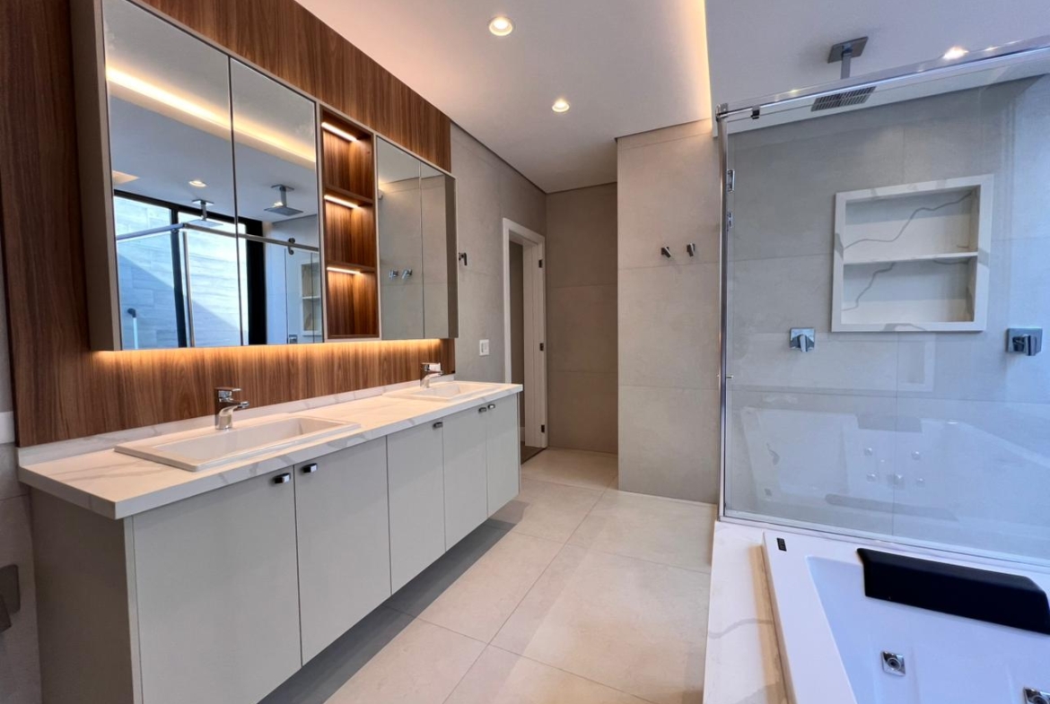 Entre os diferenciais estão o projeto luminotécnico com lâmpadas de LED, preparação para ar-condicionado nos quartos e salas, janelas e venezianas integradas e automatizadas, infraestrutura para CFTV, preparação para aquecimento da piscina e infraestrutura para carregamento de veículos elétricos.