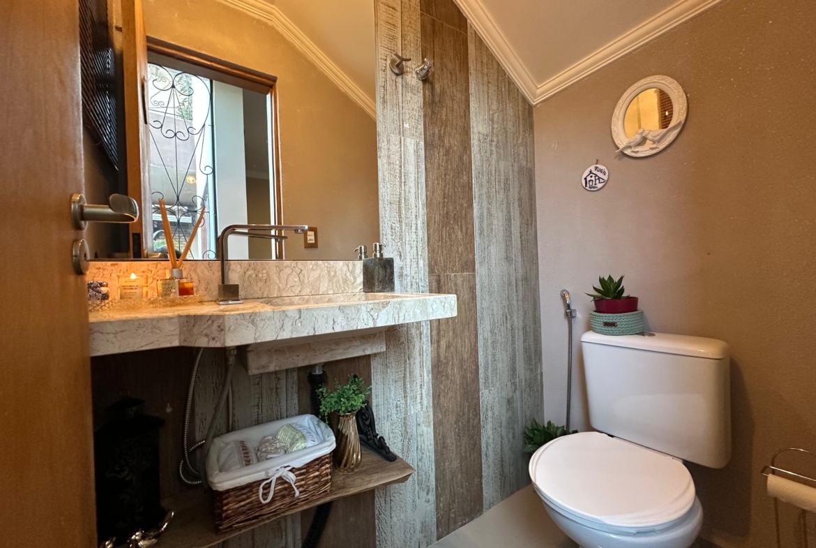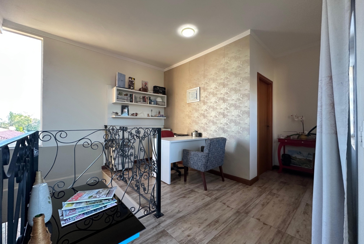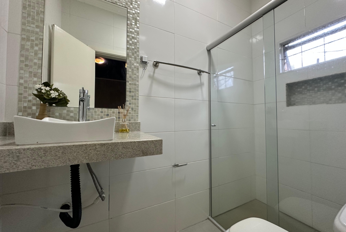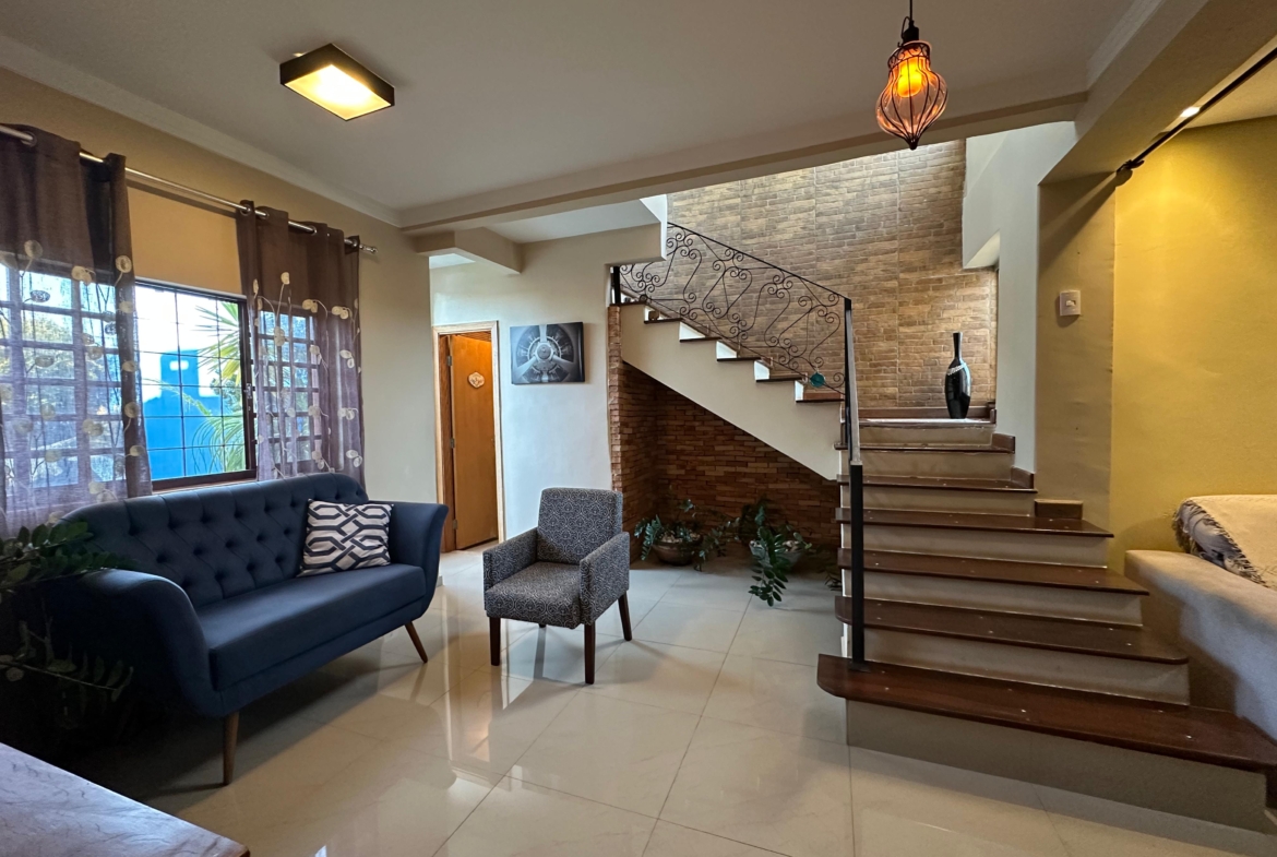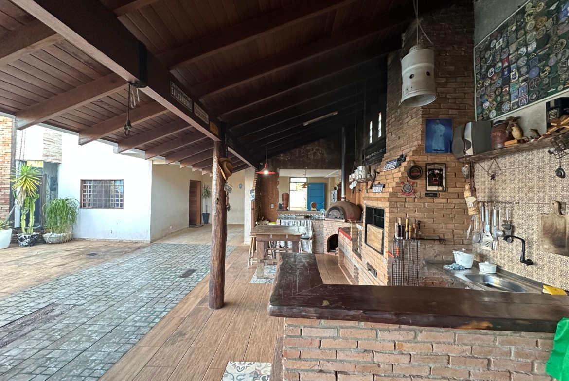 A área gourmet é um grande destaque, equipada com churrasqueira, forno a lenha e fogão a lenha, proporcionando um ambiente ideal para receber amigos e familiares. A casa conta ainda com piscina, jardim, árvores frutíferas e 6 vagas de garagem. Entre os diferenciais, estão energia solar fotovoltaica, portão eletrônico, piso tátil, muro, calçada, rede elétrica, água, esgoto e asfalto.
