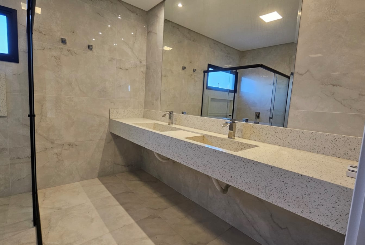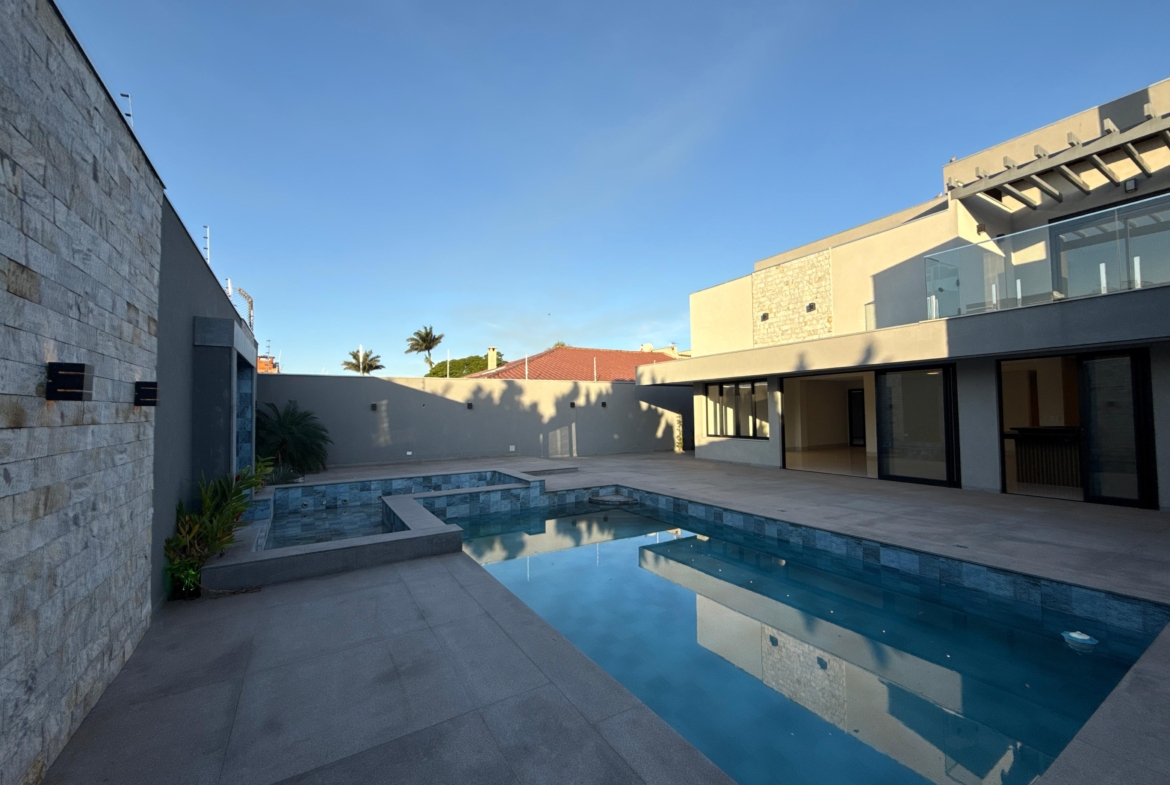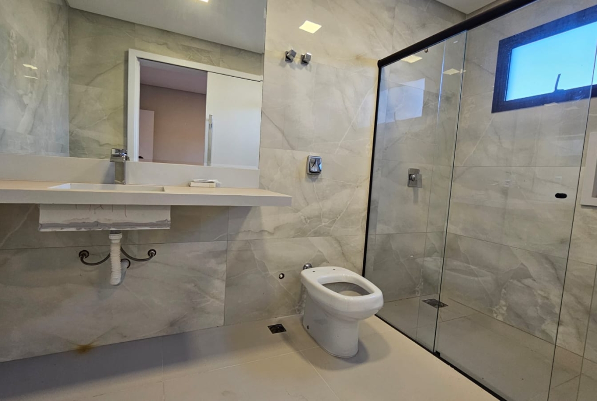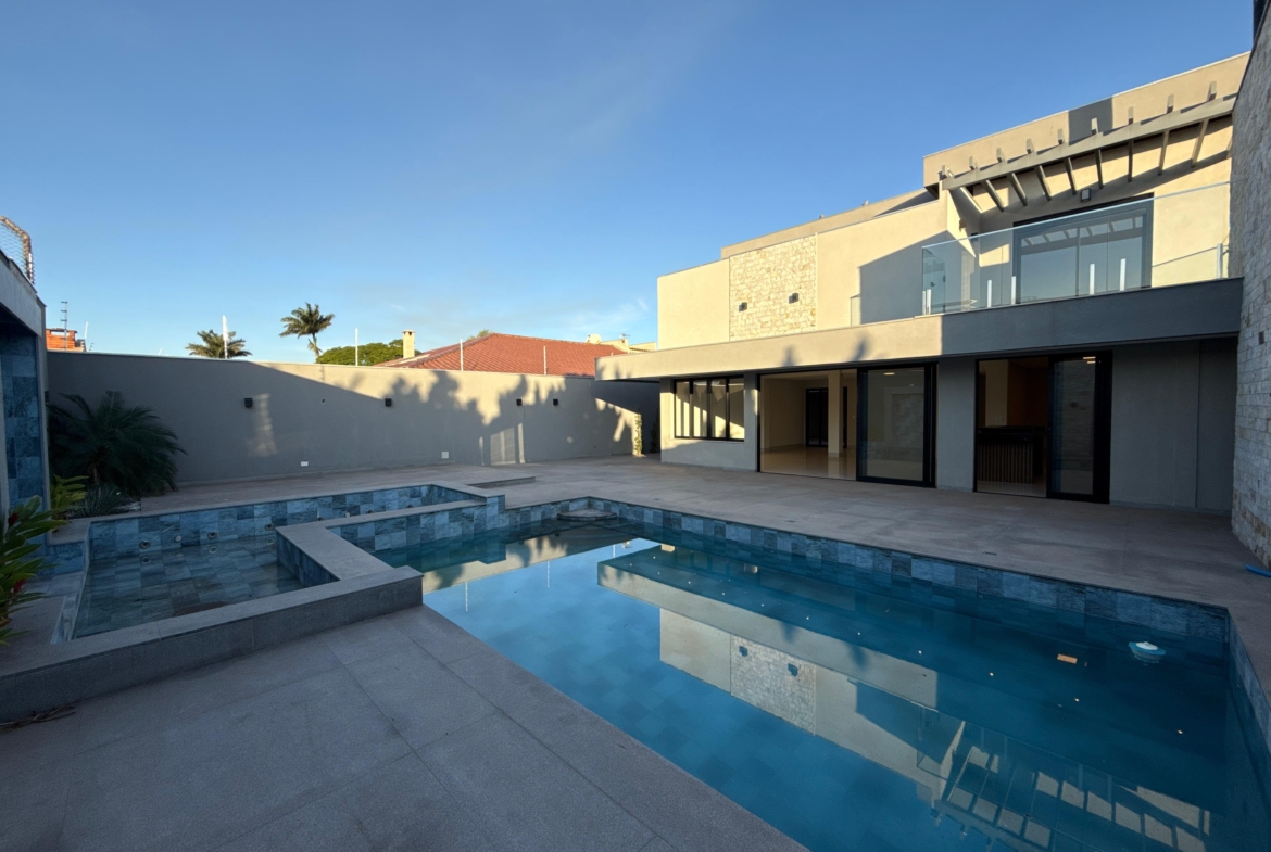 Para o lazer, o imóvel dispõe de piscina aquecida revestida em porcelanato 72 x 72 cm, além de um belo jardim com iluminação especial. O padrão de acabamento impressiona: esquadrias de alumínio linha Suprema, pisos porcelanato polido 106 x 106 cm nas áreas sociais, granito Andorinha 100 x 100 cm no exterior, piso vinílico amadeirado no pavimento superior e porcelanatos 60 x 120 cm nos banheiros. As bancadas seguem um alto nível de elegância, incluindo quartzo Stellar branco na suíte, prime branco nos banheiros dos apartamentos, ônix natural no lavabo, preto São Gabriel na cozinha e preto Via Láctea na área gourmet e escada. Toda a casa apresenta gesso rebaixado com iluminação embutida e decorativa, além de um projeto luminotécnico completo em todos os ambientes internos, externos e jardins. Imóvel impecável, pronto para financiamento e ideal para quem busca conforto, segurança e requinte em uma das melhores regiões da cidade.